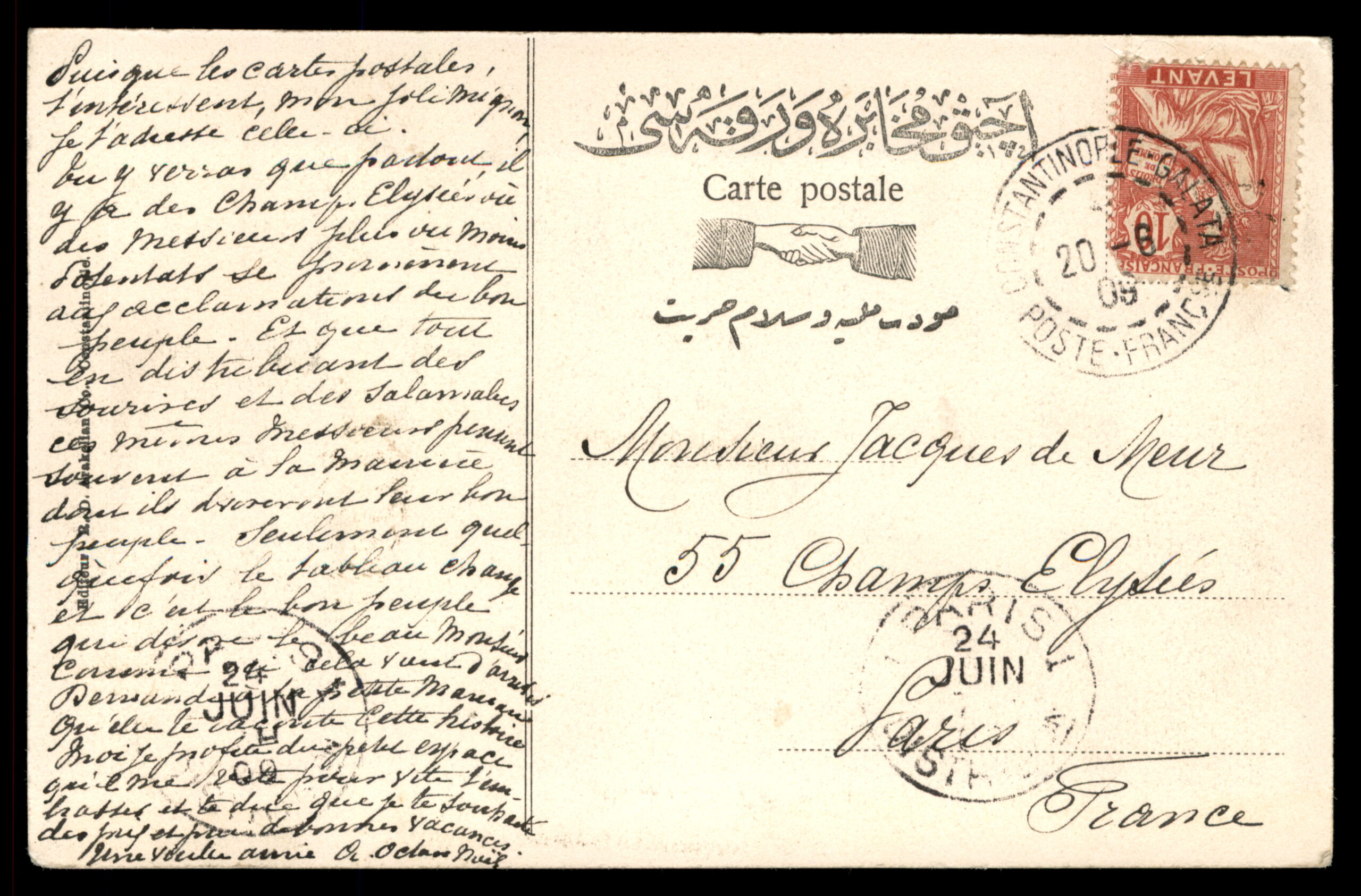 HE: לוט 199 – גלויה בעלת חשיבות היסטורית מ"סדרה ראשונה של טורקיה החופשית" (Turquie Libre), המתארת את טקס הסלאמליק ב-18 ביולי 1908 (לוח ישן), בזמן מהפכת הטורקים הצעירים. בתמונה נראה המון עצום המקיף תהלוכה רשמית עם כרכרה, המציין את אחד הרגעים המכריעים ביותר בהיסטוריה העותמאנית – שיקום החוקה העותמאנית ותחילת העידן החוקתי השני. סצנה דרמטית זו לוכדת את האופוריה של המהפכה שסיימה את שלטונו האוטוקרטי של הסולטן עבדול חמיד השני. מסמך היסטורי נדיר של מהפכת 1908.