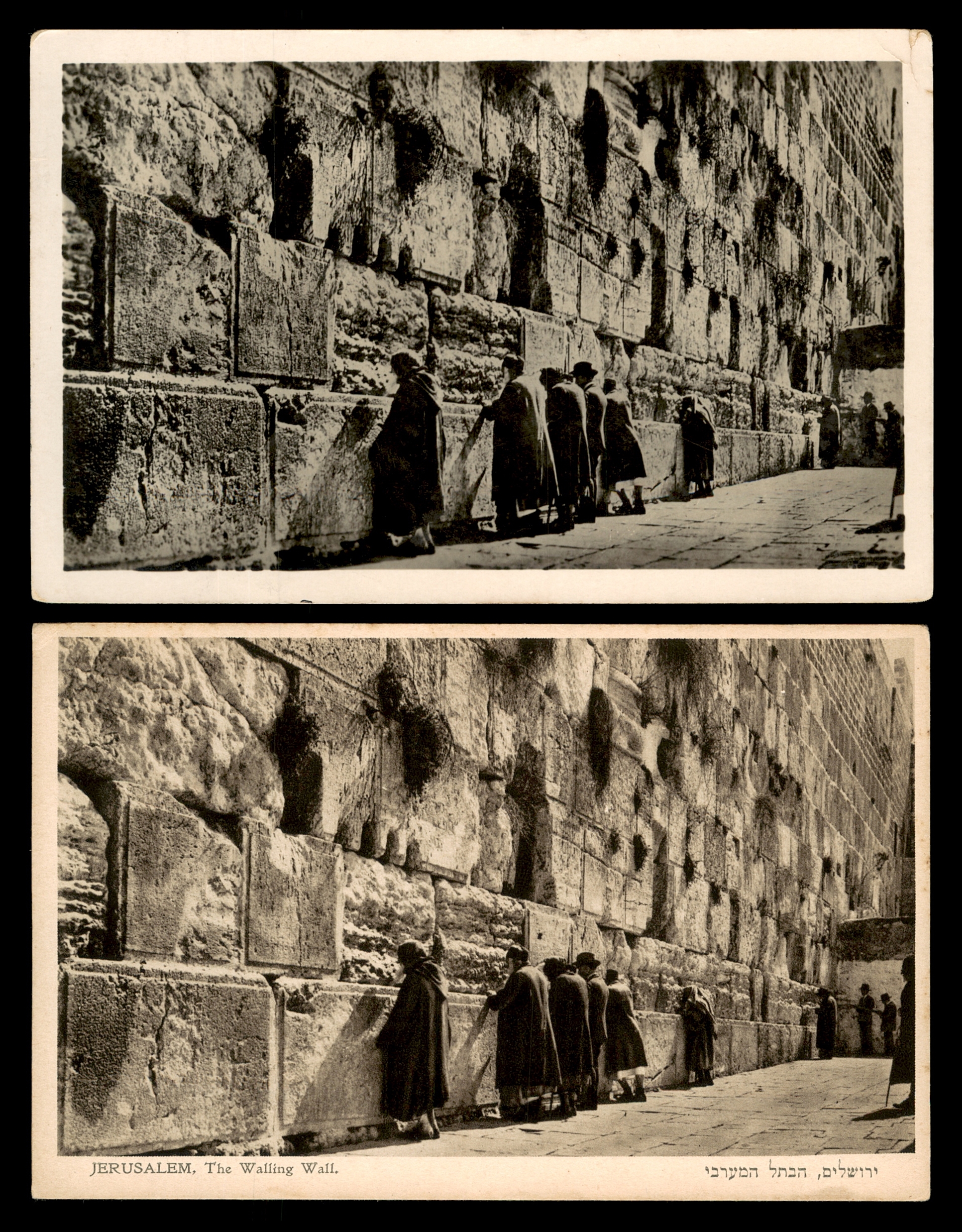 לוט 87 – אוסף 2 גלויות "ירושלים, הכתל המערבי" – צילומים עתיקים מתקופת המנדט | Lot 87 – Collection of 2 Vintage "Jerusalem, The Wailing Wall" Postcards, British Mandate Era